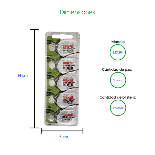 Bateria 5 Pilas para reloj 396 (SR726W) 1 Blister Pila de Boton