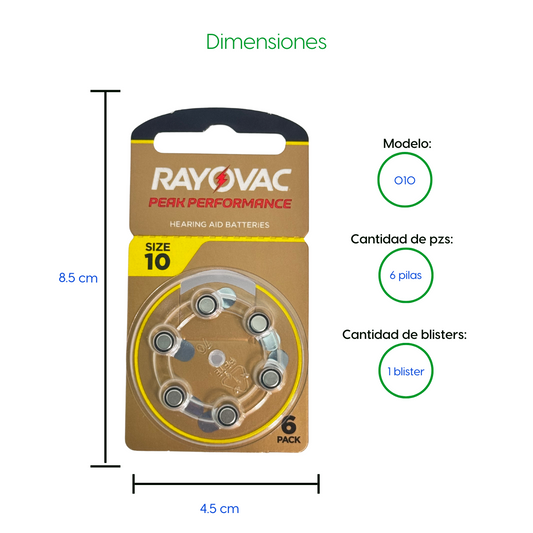 Bateria 6 Pilas Auditivas 010 Rayovac Peak PerformancePrecio habitual $ 79.00 MXNPrecio habitualPrecio unitario / por-
