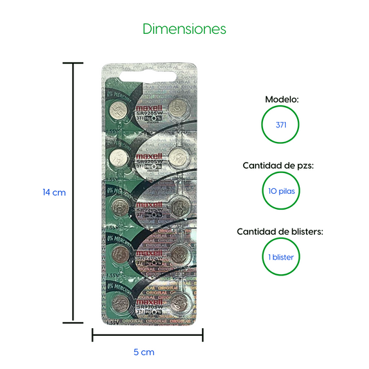 Bateria 10 Pilas para reloj 371 (SR920SW) 1 Blister Pila Boton