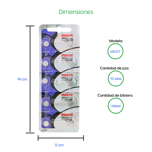 Bateria 10 Pilas para reloj 377 (SR626SW) 1 Blister Pila de Botón