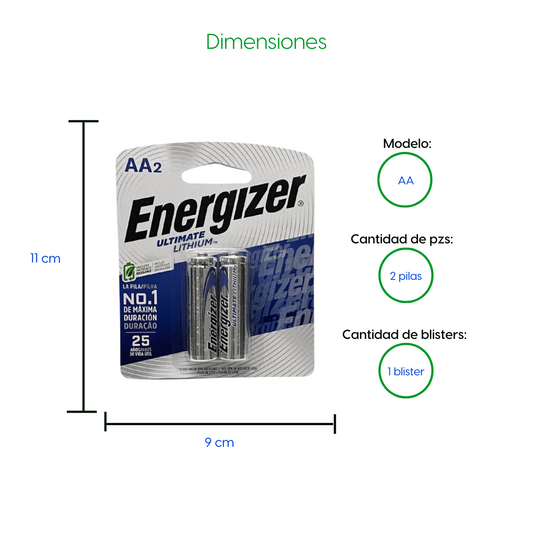 2 Piezas Bateria Pilas Energizer Doble AA - Litio