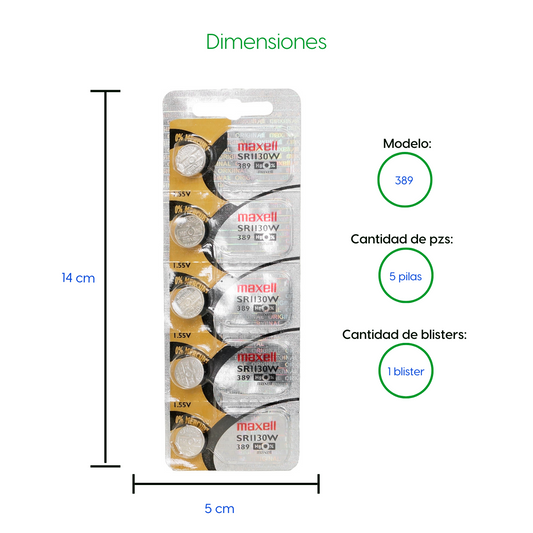 5 Pila Bateria Para Reloj 389 Maxell 1 Blister Boton Sr1130w