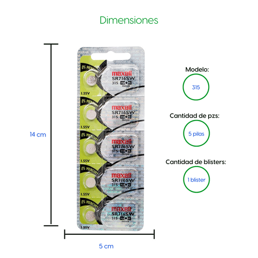 Bateria 5 Pila para reloj Maxell 315 SR716SW 1 Blister Pila de Botón