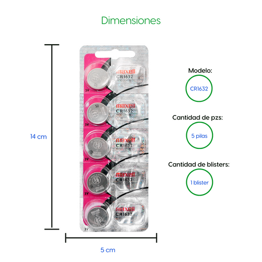 Bateria 5 Pila de Litio CR1632 Maxell 1 Blister Pila Boton