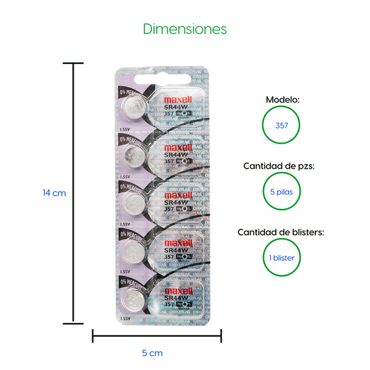 Bateria 5 Pila Para Reloj 357 Maxell 1 Blister Boton SR44W