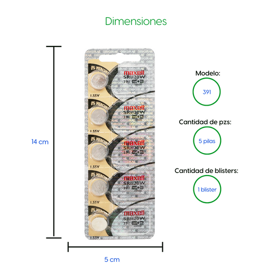 Bateria 5 Pila Para Reloj 391 Maxell 1 Blister Boton SR1120w