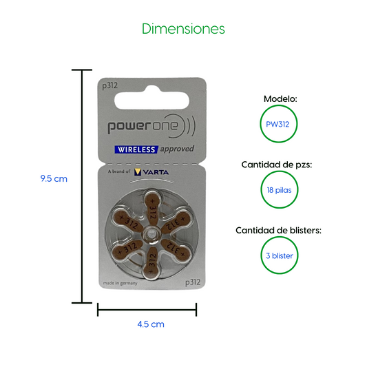 Pila 312 Power One para Auxiliar Auditivo (pqt 18 pilas)