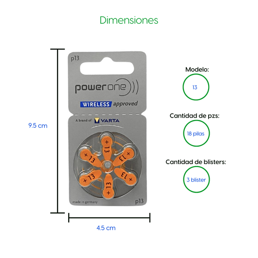 Bateria 18 Pilas 013 Power One para Auxiliar Auditivo 3 blister