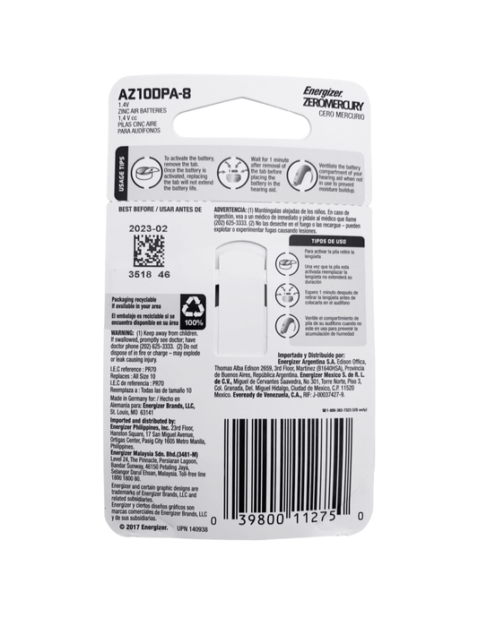 Bateria Pila Energizer 013 Para Auxiliar Auditivo AZ13-8