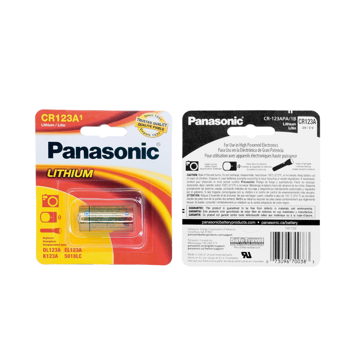 Pila de Litio CR123A Panasonic, con forma cilíndrica y larga duración. Con su capacidad de 1500mAh es recomendada para cámaras, la cual asegura la energía para todos tus dispositivos. No está diseñada para ser recargada y debe ser desechada al término de vida.