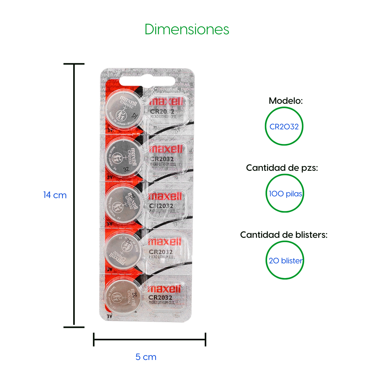 Bateria 100 Pila de Litio CR2032 Maxell 20 Blister Pila para Boton Reloj Control